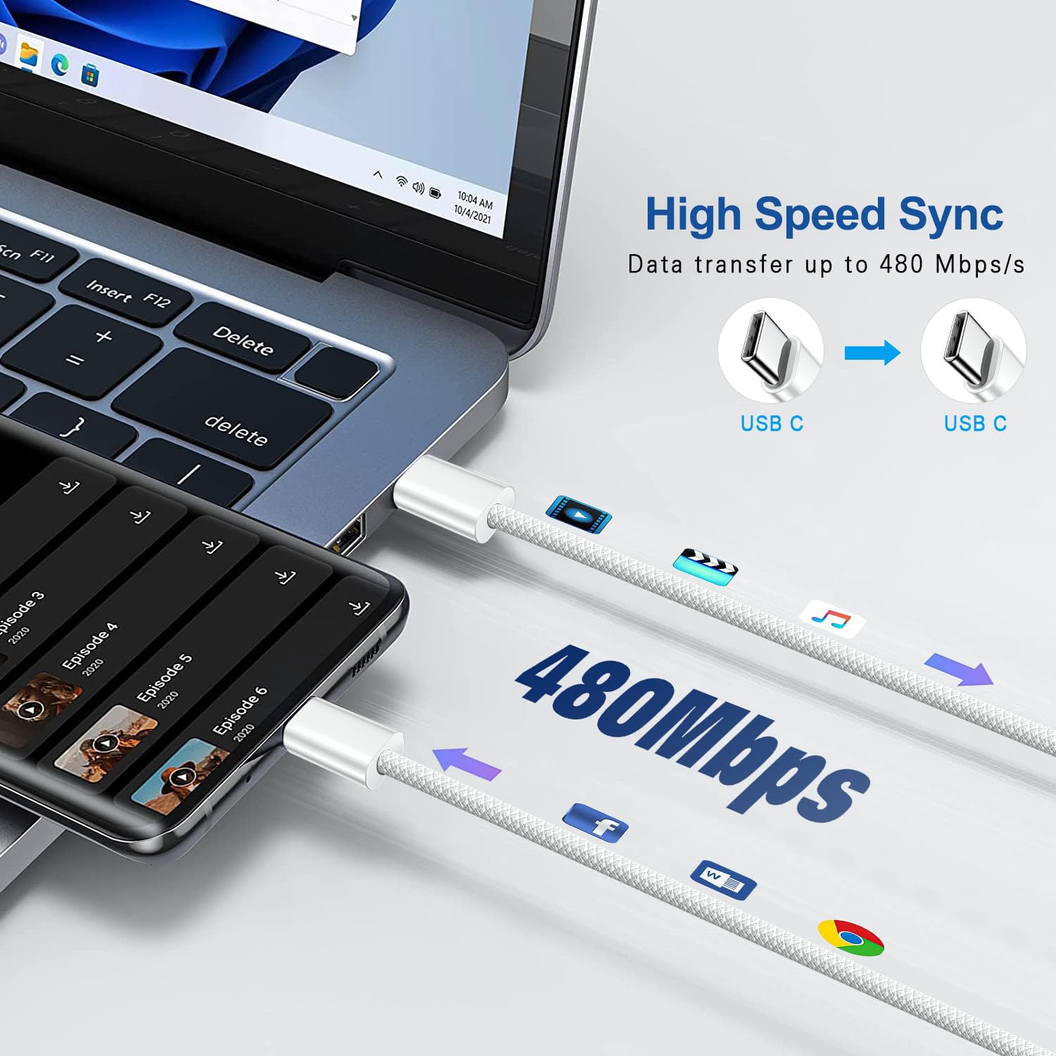 【Type C Woven Charging Cable】10FT long Type-C to C Woven cable,equipped with an intelligent chip, it ensures a rapid 3A charging speed. Perfectly Meet for iPhone 17 Pro Max charging needs. The cable’s reversible design allows for effortless plug-in, while enabling efficient 480Mbps data syncing. With its generous 10FT length, you’ll move your device around while keeping your device powered up.