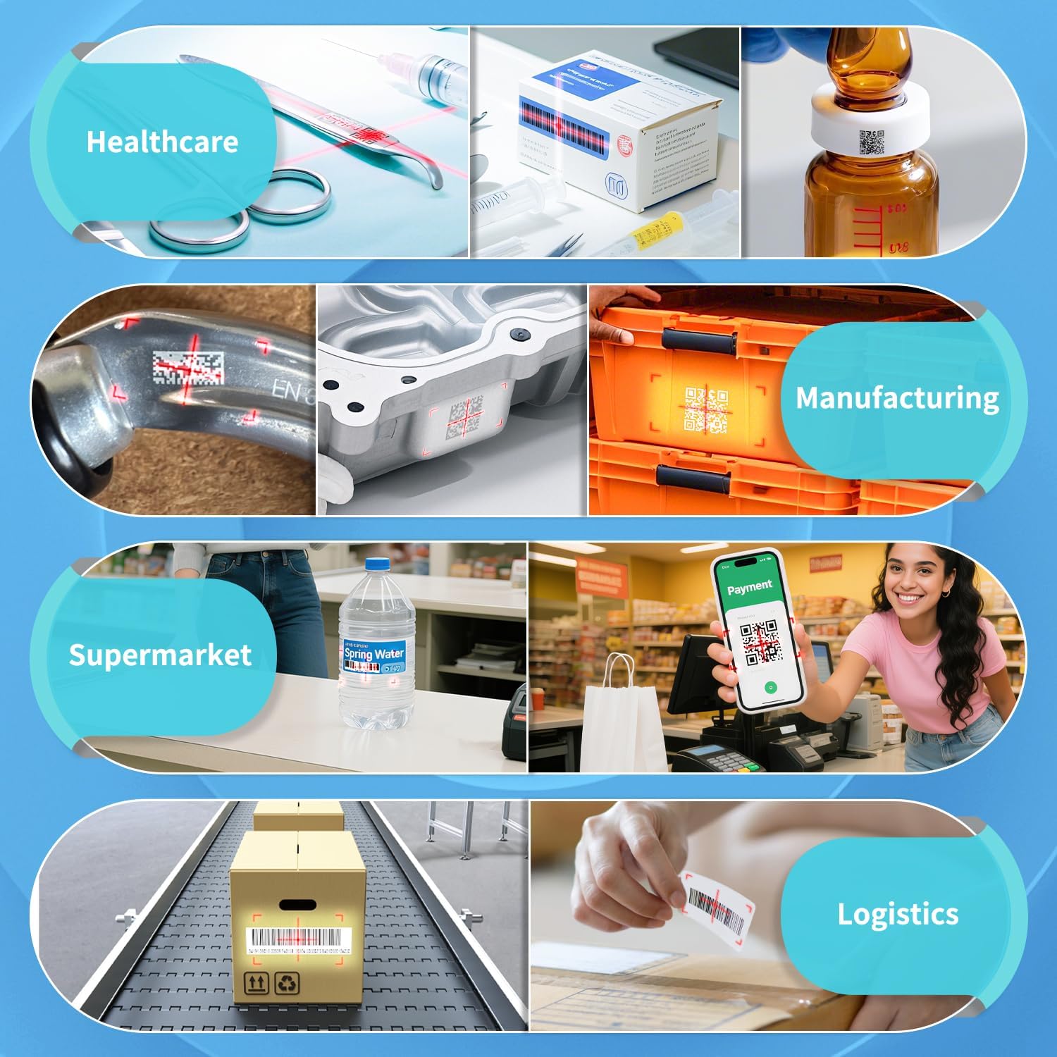 **High-Resolution Scanning: NETUM CS8501 Barcode Scanner is equiped with advanced 1280H × 1024V pixels(1.3M) CMOS sensor. With high-speed global exposure, it can read all kinds of small barcodes smoothly(1D: ≥3 mil ; QR: ≥5 mil(HD); DM: ≥5 mil(SR)), precise DPM barcode scanning, It can be widely used in electronics manufacturing, photovoltaic, new energy, medical and inspection equipment, intelligent manufacturing.