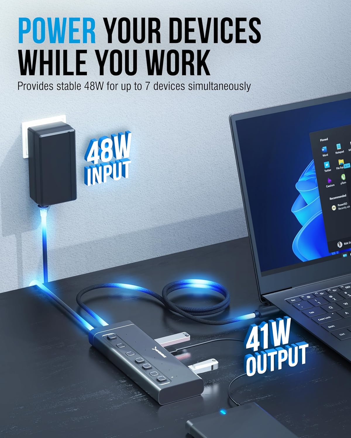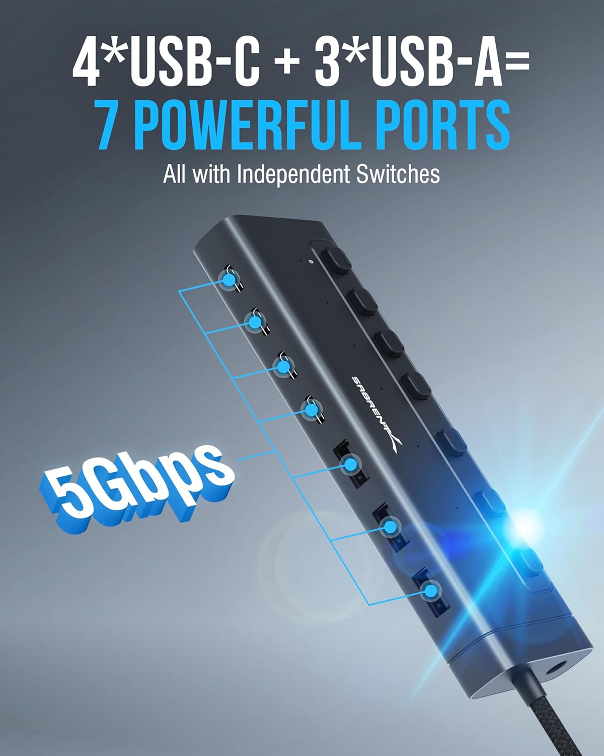 Power & performance 7-Port USB-C Hub With Independent Switches
