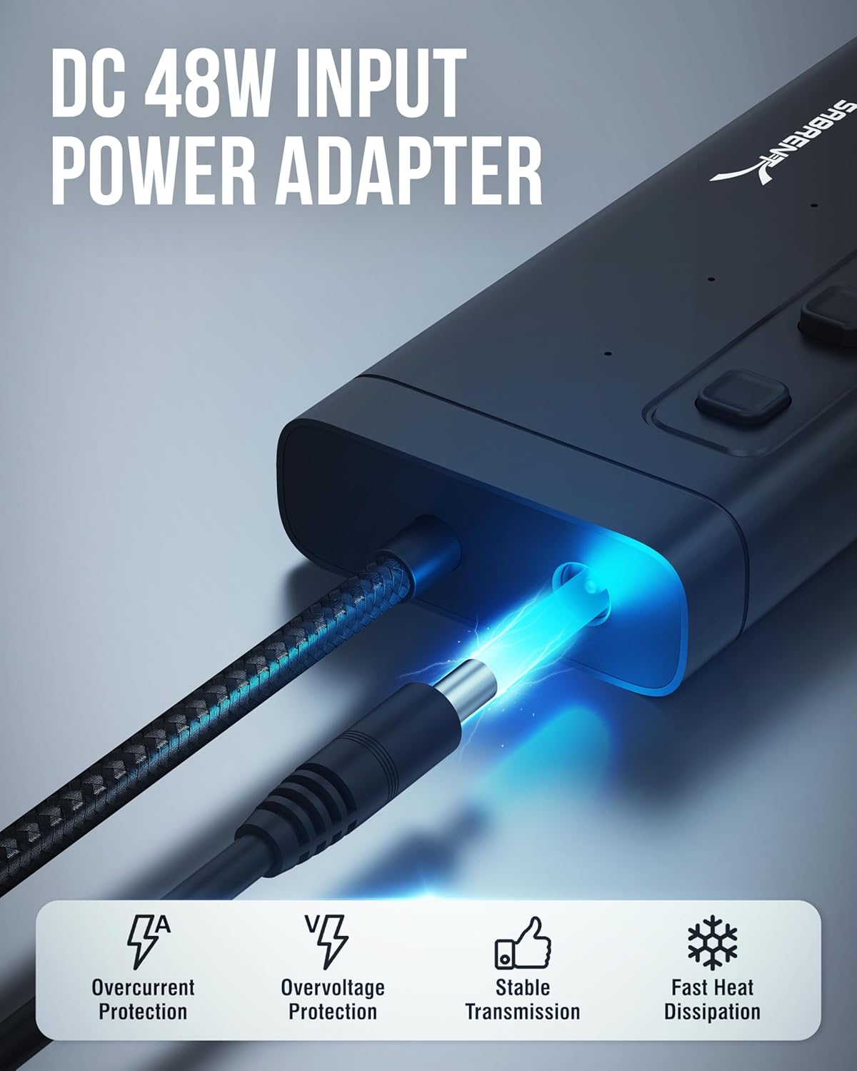 Robust Aluminum Build: Durable, heat-dissipating aluminum alloy housing ensures stable performance under load. Includes 48W power adapter for reliable use.