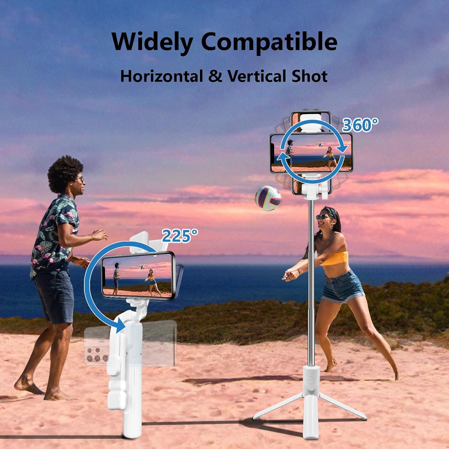 [Record your every moment in all directions]–This tripod selfie stick is made of aluminum alloy and is very sturdy. The mobile phone holder adopts a 360° rota-table mobile phone clip and a 225° rota-table gimbals to help you quickly find the best shooting angle. When using it, just pull the support point and extend the spring end of the clip to fix your phone. There is also a switch on the side of the bracket to adjust the tension, which is fully prepared for your shooting.
